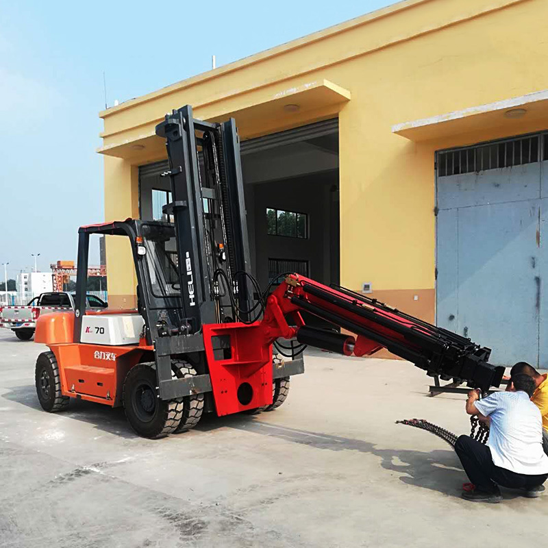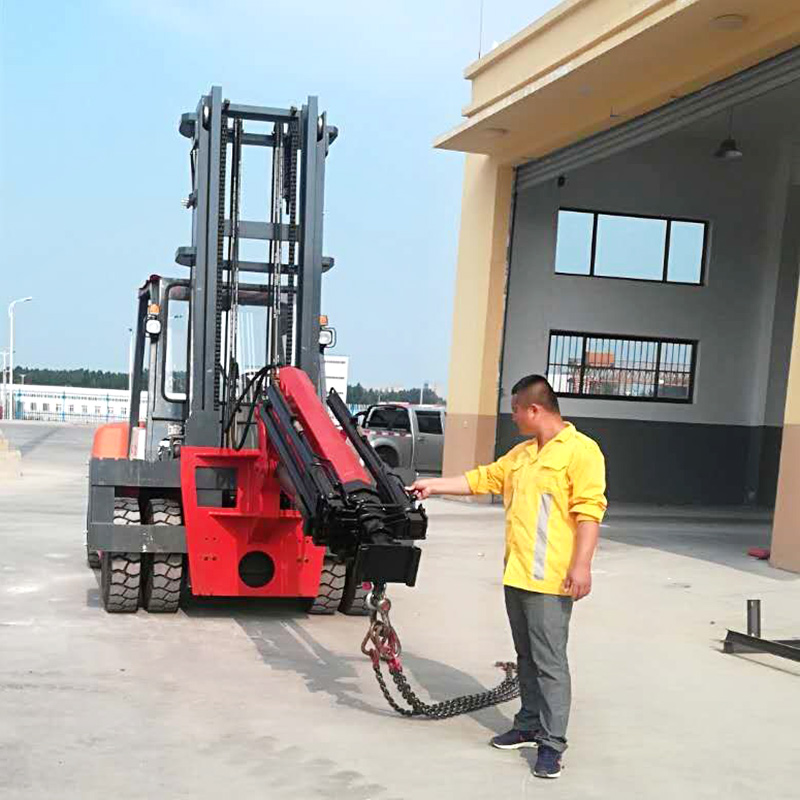 叉車飛臂吊可擺動角度實(shí)現(xiàn)低空,高空取物。吊臂油缸驅(qū)動伸縮實(shí)現(xiàn)設(shè)備貨物定位。