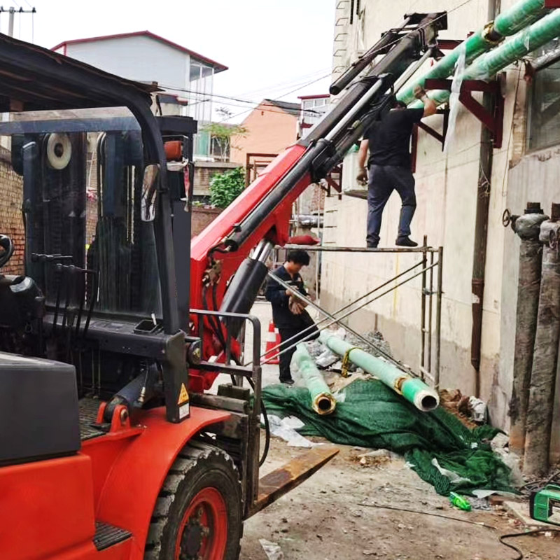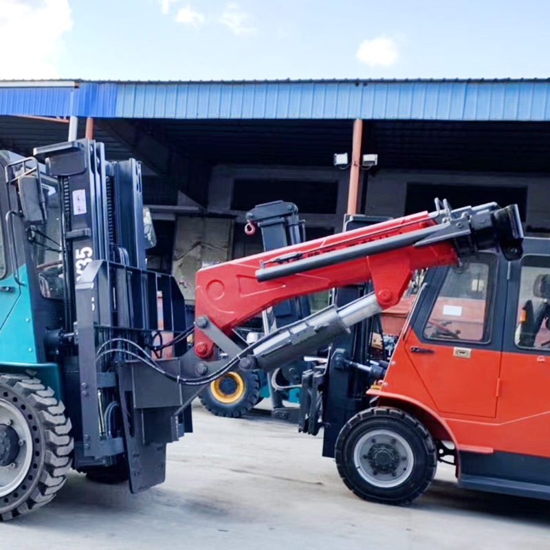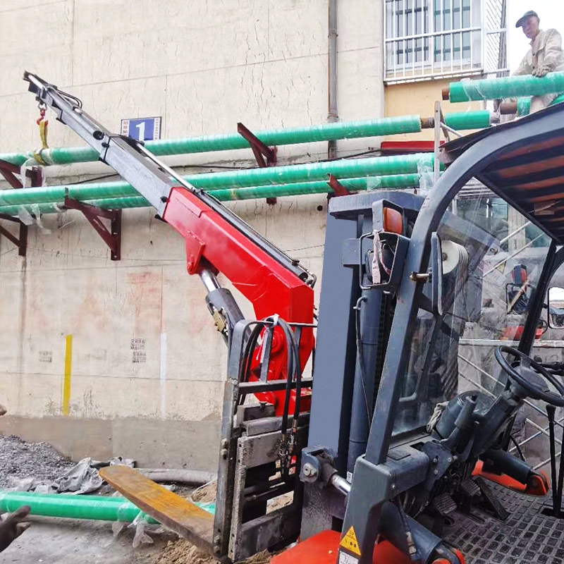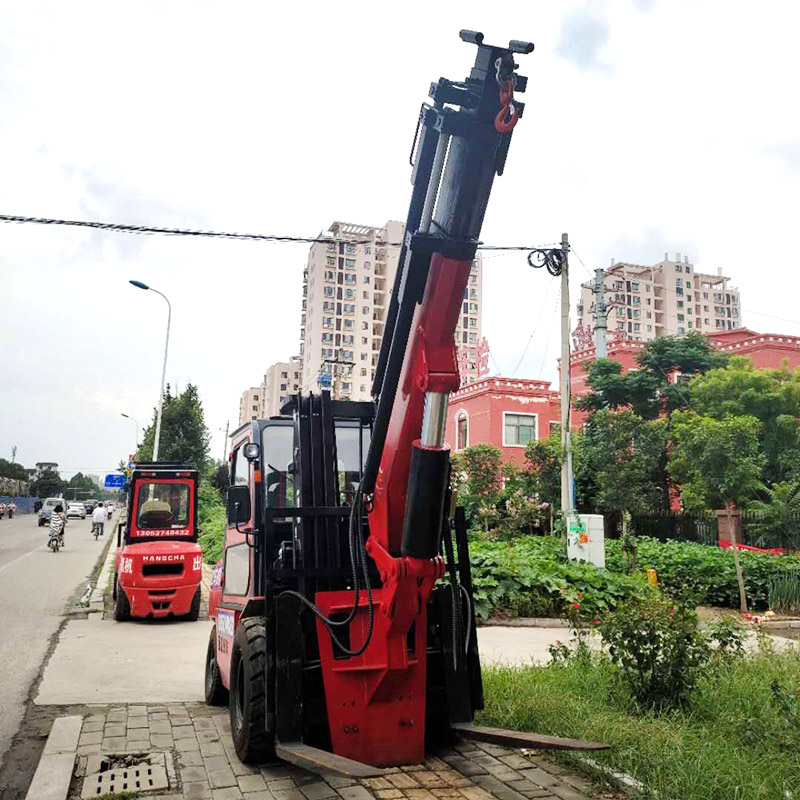 叉車飛臂吊可擺動角度實(shí)現(xiàn)低空,高空取物。吊臂油缸驅(qū)動伸縮實(shí)現(xiàn)設(shè)備貨物定位。